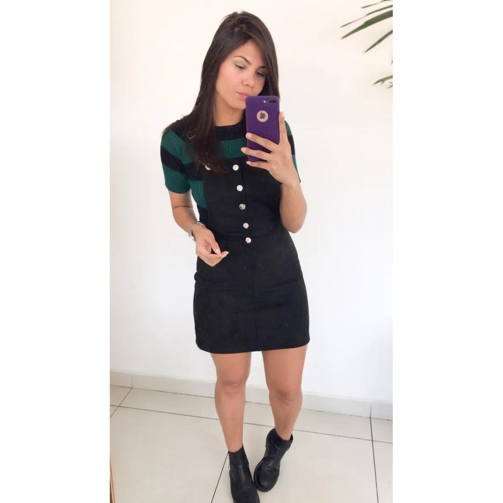 Product Name: Jardineira saia suede best sale